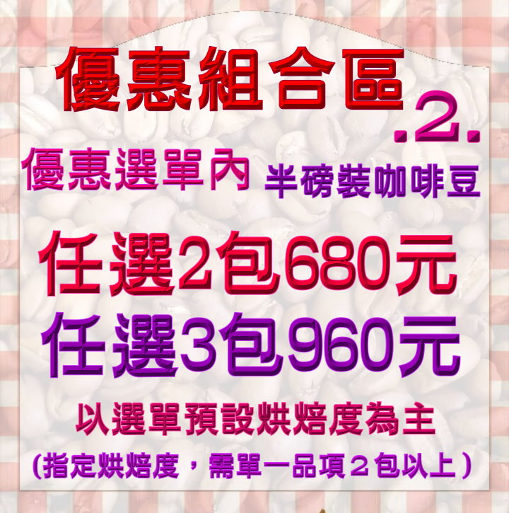 📣烘好的咖啡豆建議養豆一段時期,風味會更豐富圓潤好喝,淺焙豆建議養豆期約為10~20天,淺~中焙豆建議養豆期約為7~15天,中~中深焙豆建議養豆期約為5~10天(僅供參考,您可自行斟酌熟成適飲時間) 🎈優惠咖啡豆組合已享優惠特價,基於優惠擇優適用不重覆的原則,不適用其他折扣方案。